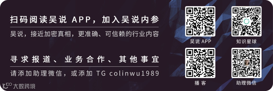 根据央行等部门发布“关于进一步防范和处置虚拟货币交易炒作风险的通知”,本文内容仅用于信息分享,不对任何经营与投资行为进行推广与背书,请读者严格遵守所在地区法律法规,不参与任何非法金融行为。不为任何虚拟货币、数字藏品相关的发行、交易与融资等提供交易入口、指引、发行渠道引导等。吴说内容未经许可,禁止进行转载、复制等,违者将追究法律责任。