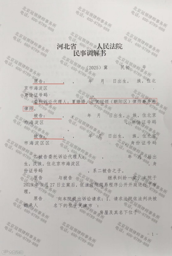 10月25日,冠领律所发布调解成功案例。河北廊坊委托人想要继承母亲价值130万元的两套房屋,却因公证程序受阻陷入困境。冠领律师通过诉讼调解的方式,仅用57天,帮委托人化解继承难题。