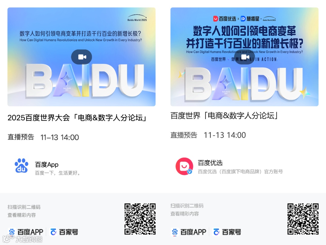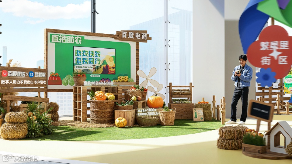 【中心广场-慧播星数字人展台、繁星里街区-百度优选×百度慧播星AI助农展台、数智CBD-百度优选×百度慧播星展台】