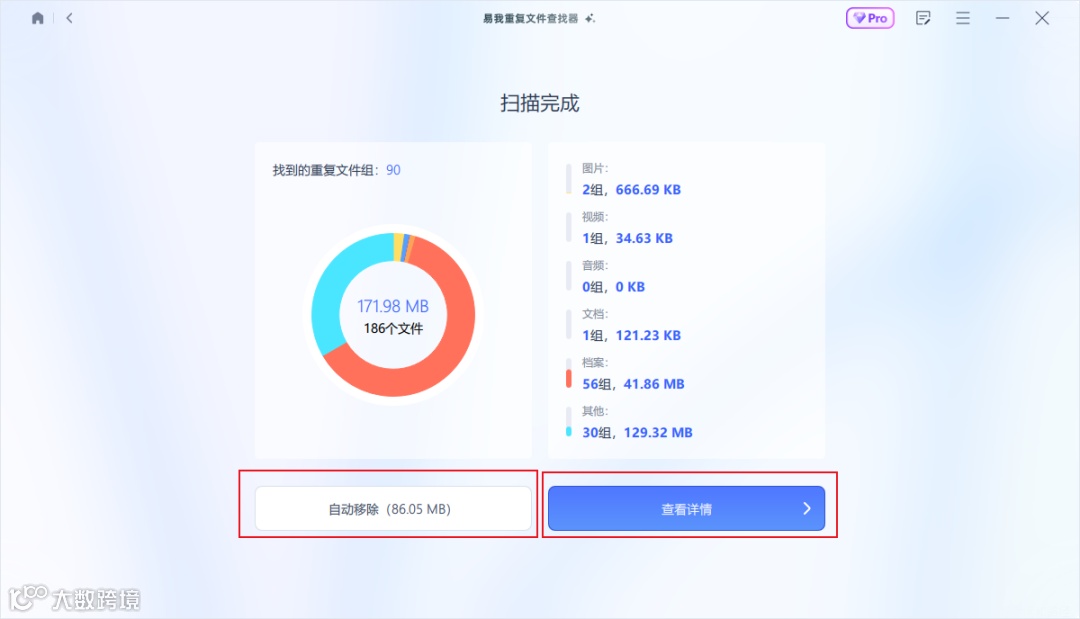 步骤3:扫描完成,软件会出现扫描完成界面,点击“自动移除”,会出现永久性删除、移动到回收站、移动到文件夹三个选项,请根据自己的需求选择;点击“查看详情”进入“重复文件报告”页面,进行“智能选择”。