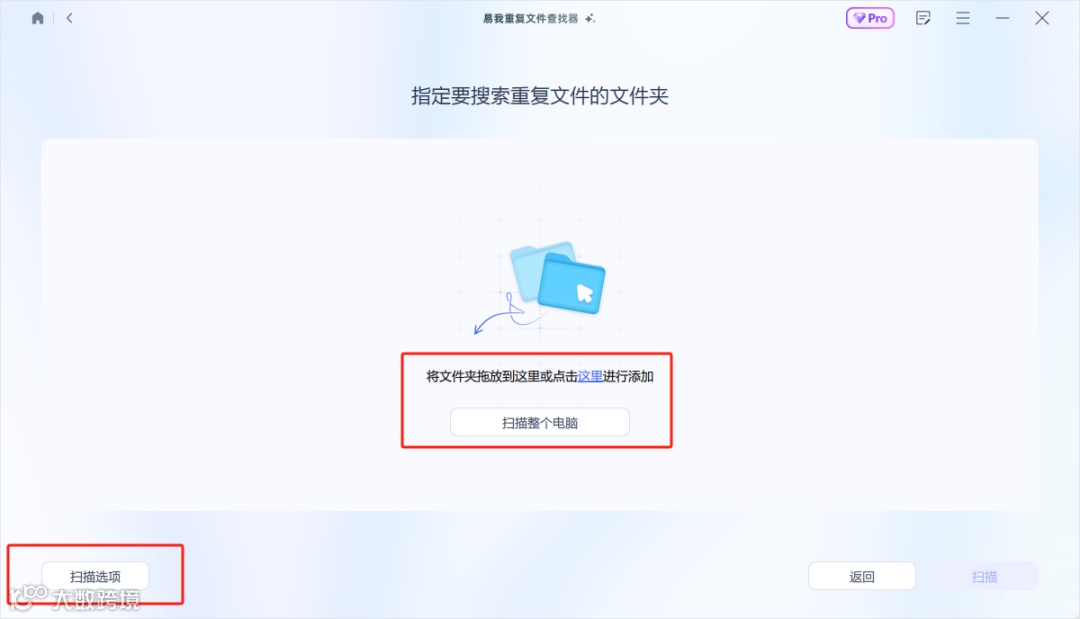 步骤2:选择扫描文档后,可在此界面重复删除或添加需要扫描的盘符或文件夹。对于更多的扫描选项,可以点击右下角“选项”进行修改。