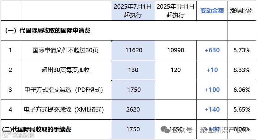 向国家知识产权局提交且收到日在2025年7月1日(含当日)之后的PCT申请的国际申请费,以及收到日在2025年7月1日(含当日)之后的PCT国际初步审查要求的手续费,适用本标准。