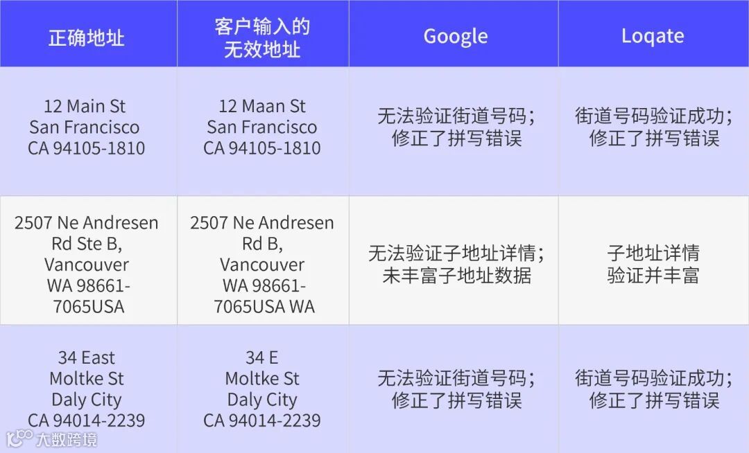 与Loqate等专业地址验证服务相比,Google的API提供的功能较少。