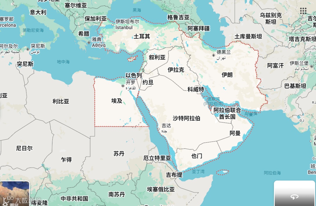 伊朗、土耳其、阿富汗也常被视为中东范畴,但土耳其和塞浦路斯偏向欧洲,伊朗是波斯国家,与阿拉伯国家有区别。