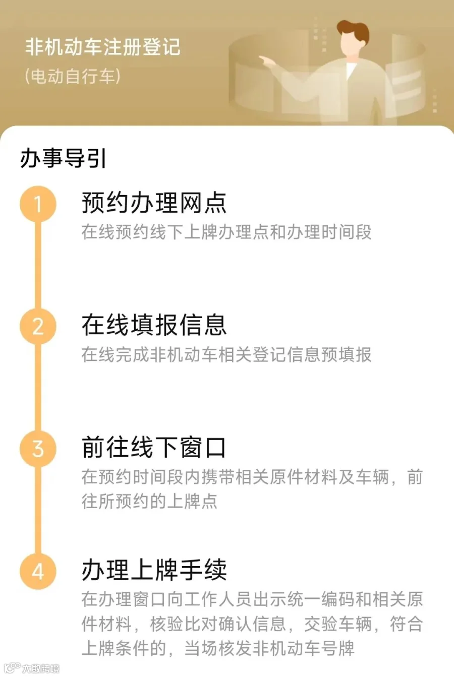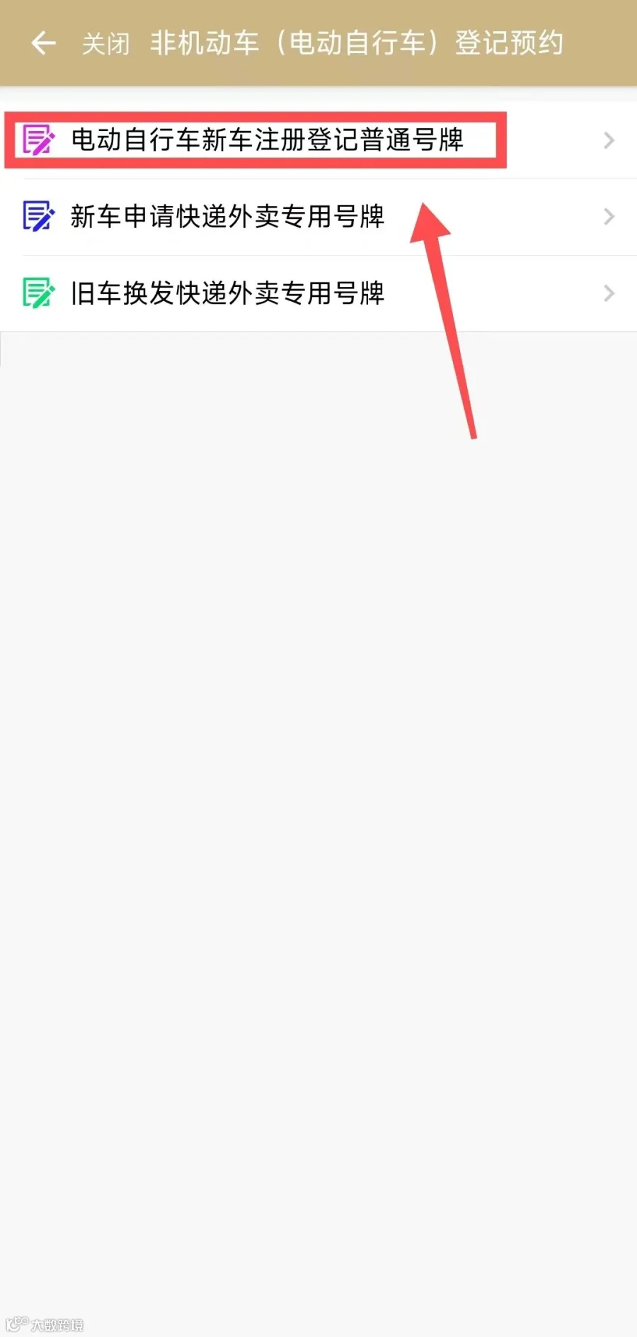 第三步:核验通过后,点击“非机动车业务预约”—“电动自行车新车注册登记普通号牌”。(依据自身情况也可选择“新车申请快递外卖专用号牌”或“旧车换发快递外卖专用号牌”)