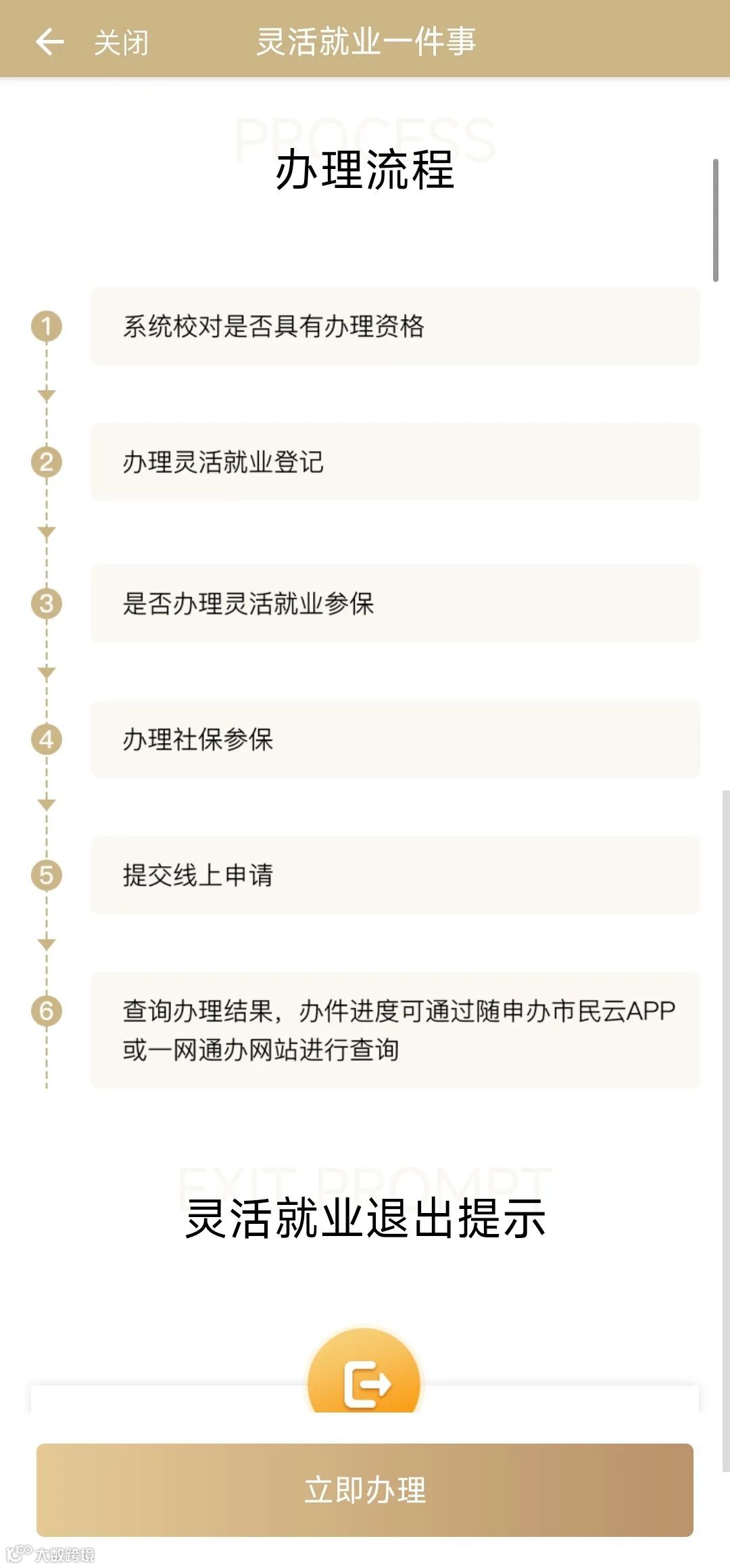 小申提示:目前“随申办市民云”灵活就业“一件事”仅支持本市及外省市户籍人员申请办理,港澳台居民及外籍人员需前往各街镇(乡)社区事务受理服务中心线下办理。