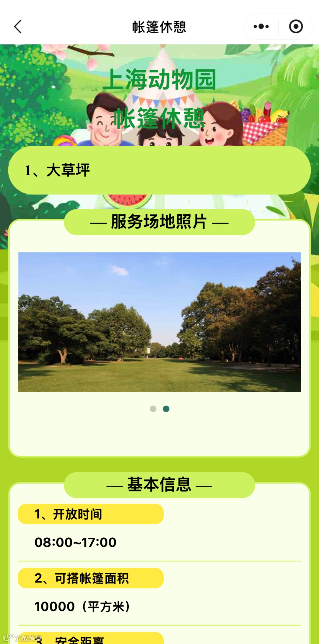 同时,点击查看符合自身需求的公园,还可了解到该公园服务场地照片、基本信息、草坪轮休计划以及位置信息等信息。