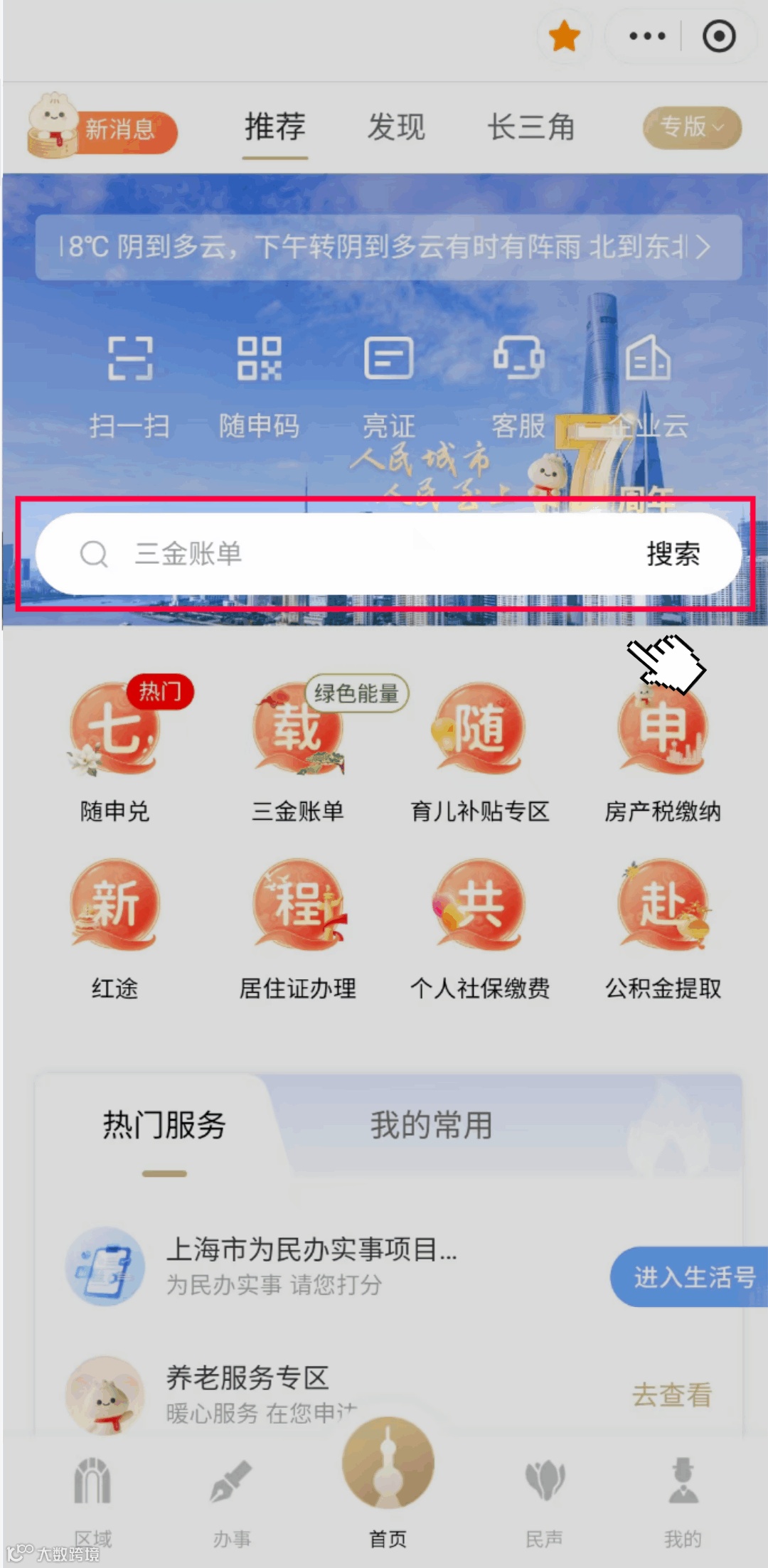 1、打开“随申办市民云”(APP/微信小程序/支付宝小程序),首页搜索“医保账户家庭共济”服务。