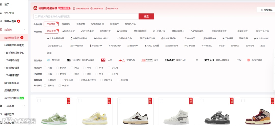 这里推荐一个直接连接1688端口的工具癞蛤蟆分销,官方授权,里面汇聚多款品质货源,从铺货上架,到爆款裂变,到店铺运营,再到一键代发,是电商人必备的一款工具。