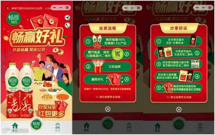例如,为分享者和被分享者提供小额的现金红包、优惠券或积分等奖励,激发消费者主动参与传播。这种方式不仅降低了营销成本,还提高了营销活动的投资回报率,使品牌能够以较少的投入获得较大的市场回报。(点击链接,了解更多详情:伊利畅意1.2L大支装扫码活动如何激活宵夜聚会场景?)