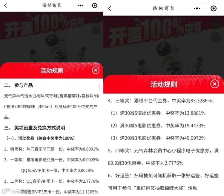对于喜好音乐节的群体来说,一票难求的音乐节门票,自己通过抢票没抢到,但是通过购买元气森林气泡水还有获得门票的机会,那么通过音乐节门票的驱动,这一群体可能会将元气森林气泡水作为首选产品购买,进而促进气泡水的动销。这种跨领域的 IP 联动,还可以为元气森林气泡水带来了更多的曝光机会,提升了品牌的知名度和影响力。(点击链接,了解更多详情:元气森林气泡水|扫码活动要不要发红包?)