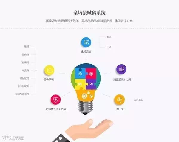 通过一物一码的产品特性可以将精准粉丝收集发挥到极致,与此同时,将防伪二维码附在单个商品上融合包装、张贴标签、喷码、激光刻码等展示,让产品拥有互联网基因。