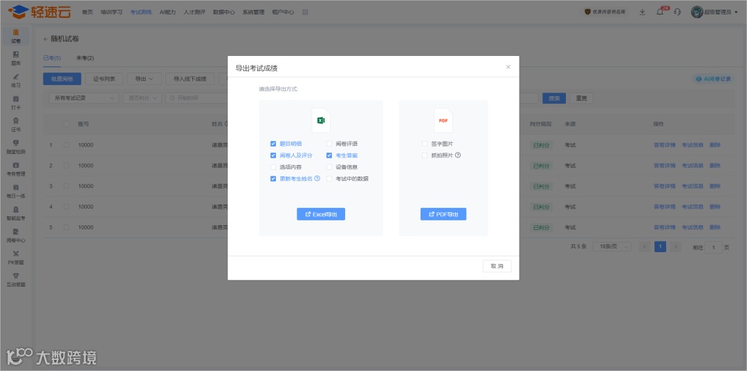 优化考试结果导出配置,现在会自动保存上次选中的配置,多次执行导出动作时不再需要反复勾选待导出的信息。