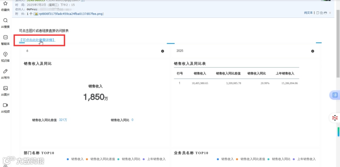 我们可以测试一下,可以看到,系统可以正常将这份报表推送给当前用户,可以在邮件中收到并打开这份报表。