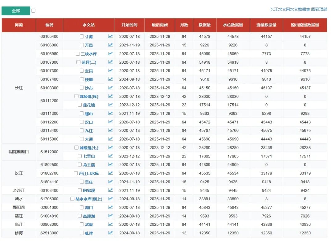3. 长江委员会:2020 - 今日,长江水文网水文数据集