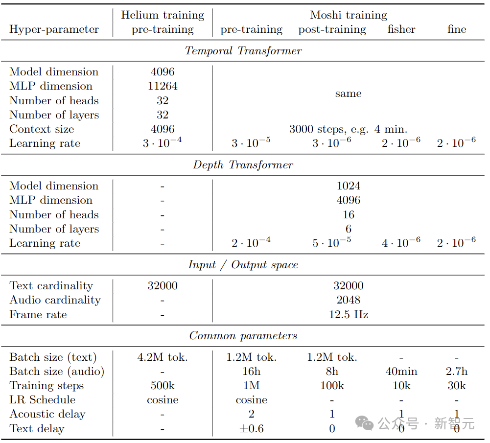 每个Transformer块包含8层、8个头、使用RoPE位置编码、250帧(20 秒)的有限上下文、模型维度512、MLP维度2048。使用 LayerScale来保证稳定训练,对角线值初始化为0.01。两个Transformer都使用因果屏蔽,保留了整个架构与流式推理的兼容性。