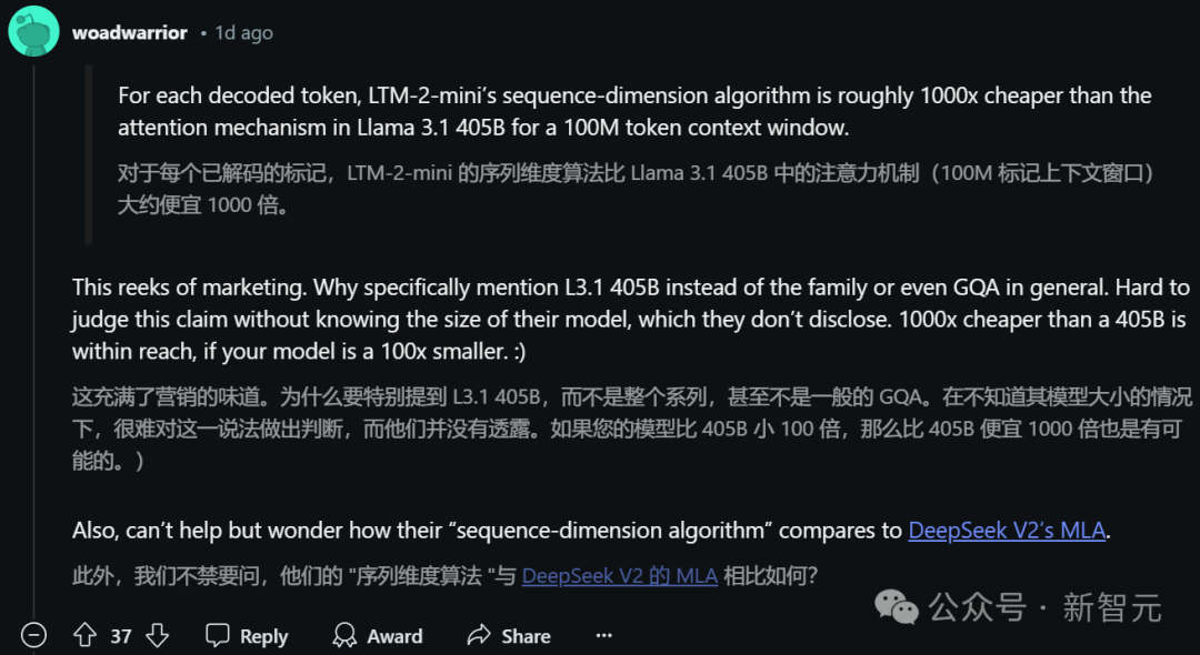 而且,LTM-2-mini采用了序列维度算法,这种计算效率要比Llama 3.1 405B的注意力机制高出约1000倍。
