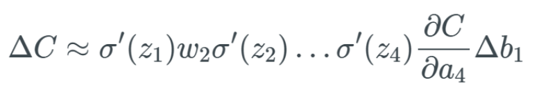 我前一篇文章的核心是我们要衡量与成本函数有关的权重和偏置的变化率。先不考虑层,我们看看一个特定的偏置,即第一个偏置 b_1。然后我们通过下式衡量变化率: