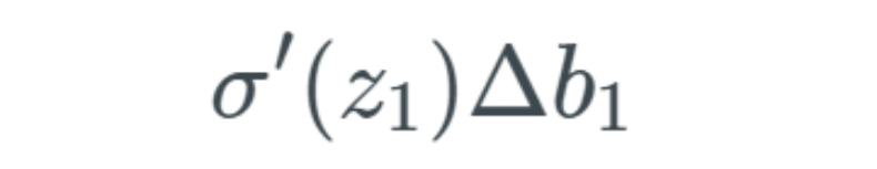 我们将变化 Δa_1 看作是与激活值 a_1 中的变化加上变化 Δb_1 近似一样。