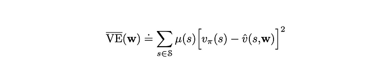 当 v̂(s, w) 可微时,可以自由选择损失函数形式。本文主要采用均方误差(MSE)作为示例,并通过状态分布权重 μ(s) 对每个误差项进行加权调整: