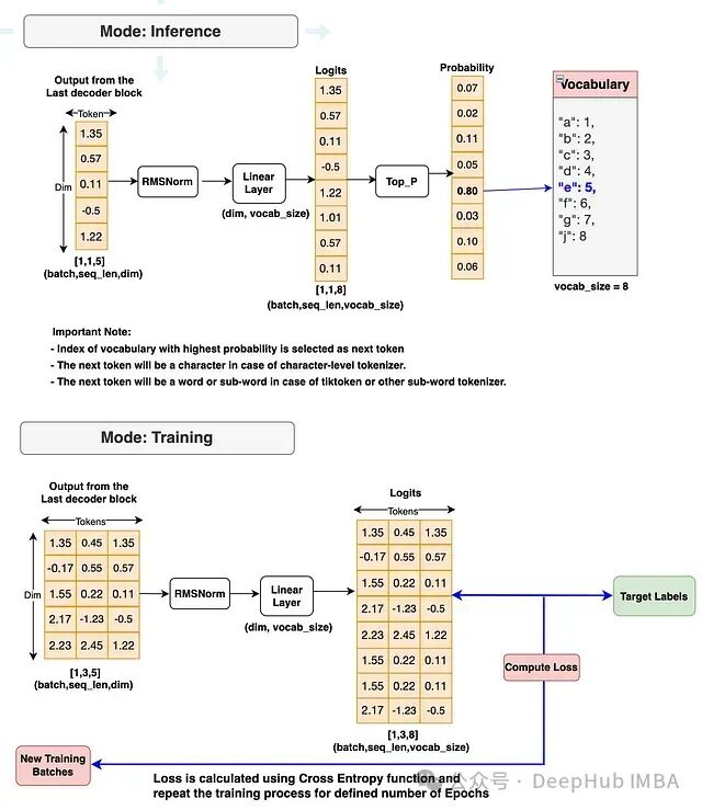 [图1]:Llama 3架构展示训练和推理流程。因为官方Llama 3论文中未提供相关图表。所以此图为大概架构图,阅读本文后你应能绘制出更为精确的架构图。