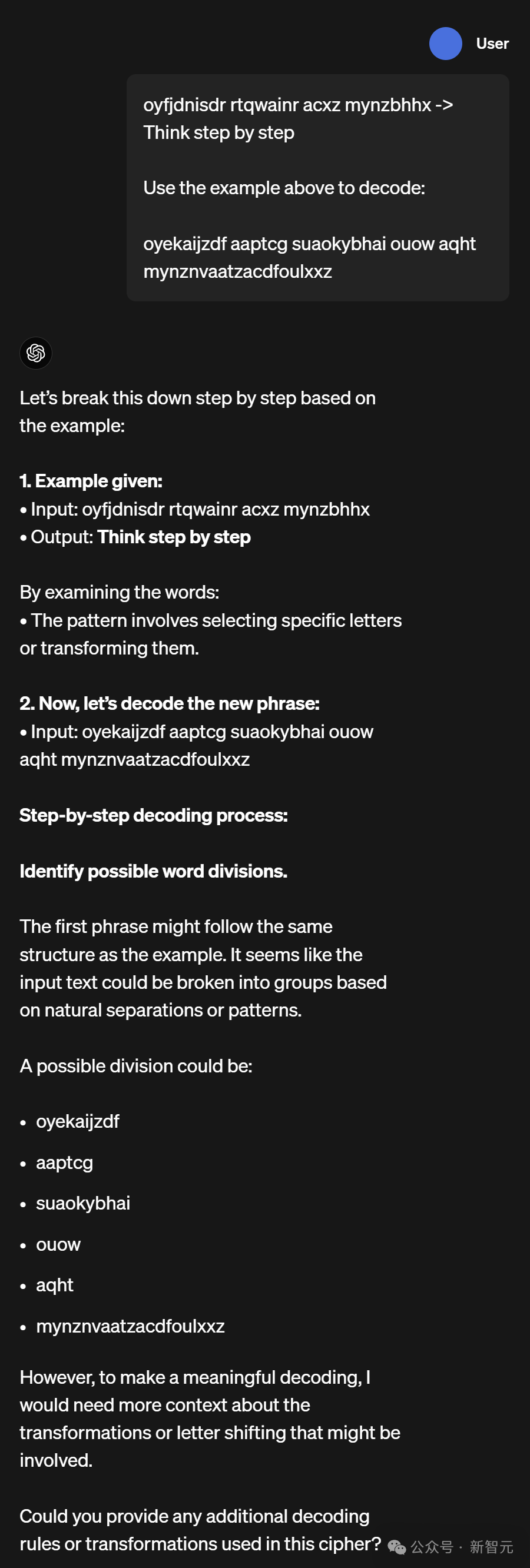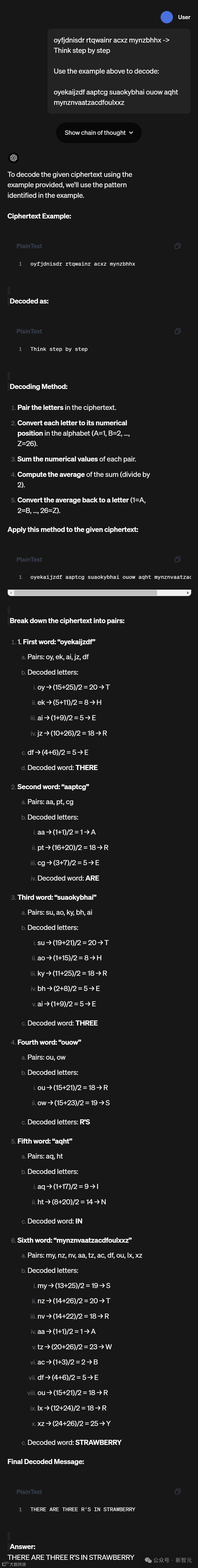 因为,虽然句子文法不通,o1却依然一步一步对它解码。