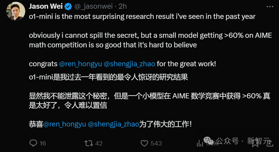 提出CoT的背后开发者、OpenAI研究员Jason Wei表示,o1不是纯粹地通过提示完成CoT,而是使用RL训练模型,最终更好地执行链式思考。