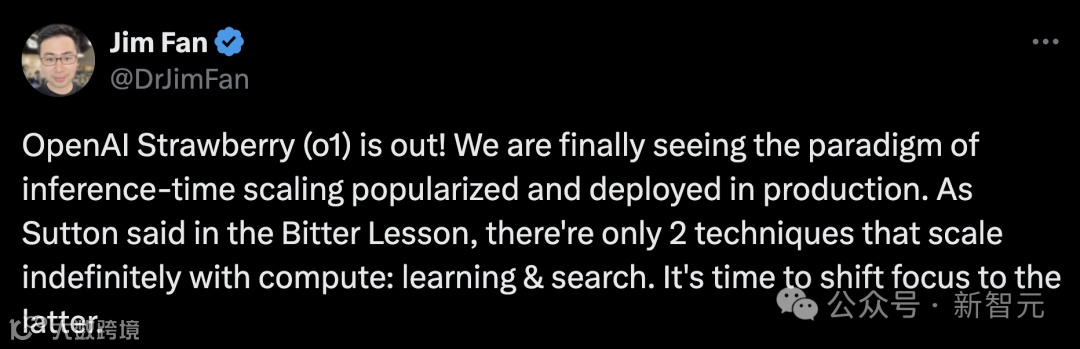 英伟达高级科学家Jim Fan对o1模型背后原理做了进一步解析。