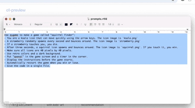 在另一个demo中,Jason Wei向我们展示了,o1是如何根据提示,就编写了一个视频游戏。