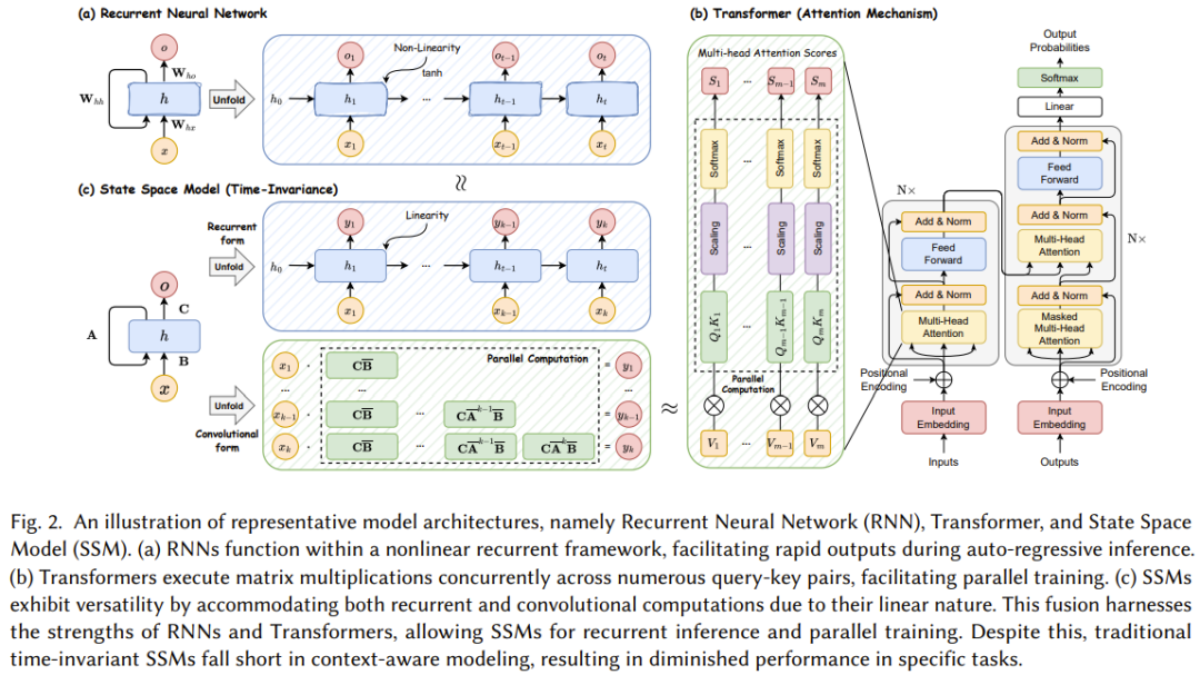 图 2 展示了 RNN、Transformer 和 SSM 的计算算法。