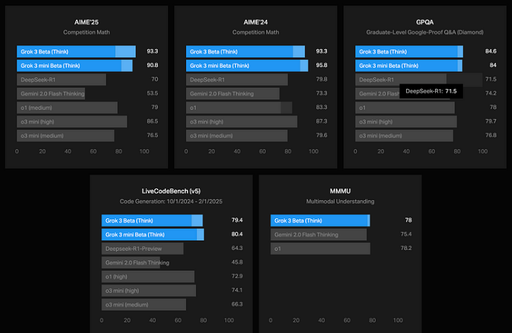 AIME 数学基准:Grok 3 的准确率为 92%。 -