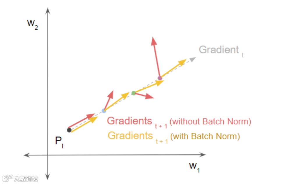 批处理归一化BN层还可以减少梯度对初始权重值的依赖。由于权重是随机初始化的,训练初期的异常权重值会扭曲梯度。因此,网络需要更长的时间才能收敛。BN层也有助于抑制这些异常值的影响。