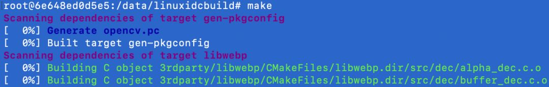 接下来我们执行 make 进行对 OpenCV 的编译:
