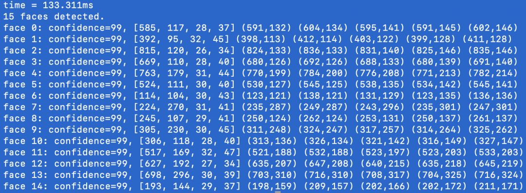 虽然看似操作非常复杂,但实际上主要就是编译 OpenCV,其它模块都可以直接在项目中完成编译。最后,就可以愉快地使用这个极速人脸检测模型了。