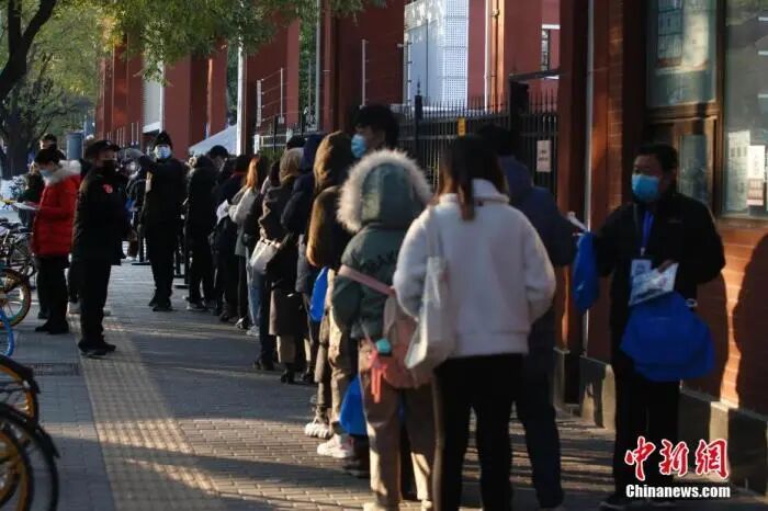 资料图:图为2020年北京一考点考生排队等候入场。中新社记者 蒋启明 摄