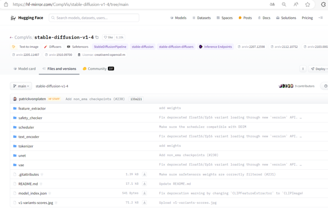 这里我们下载模型 CompVis/stable-diffusion-v1-4 ,如下: