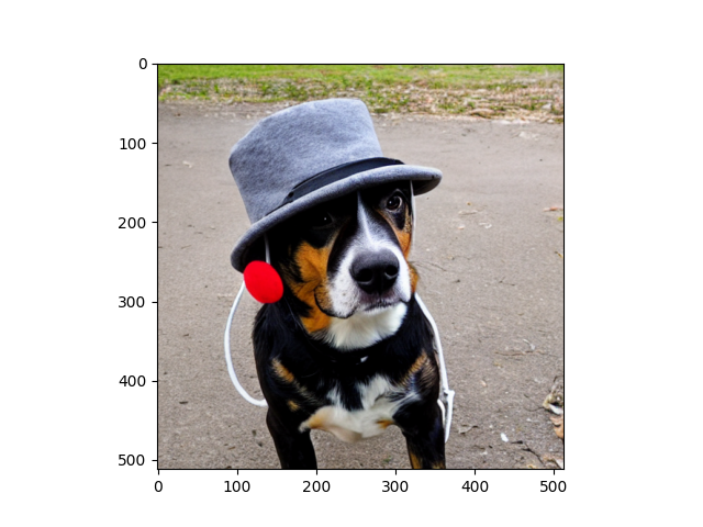 prompt = 'a dog wearing hat'img = pipe(prompt).images[0]plt.imshow(img)plt.show()