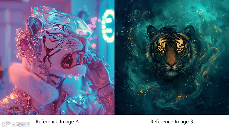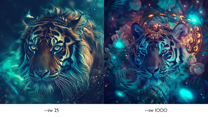 prompt: A tiger --sref urlA urlB --sw {25,1000}