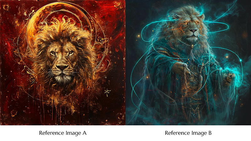 prompt: A lion wizard --sref urlA::5 urlB::2