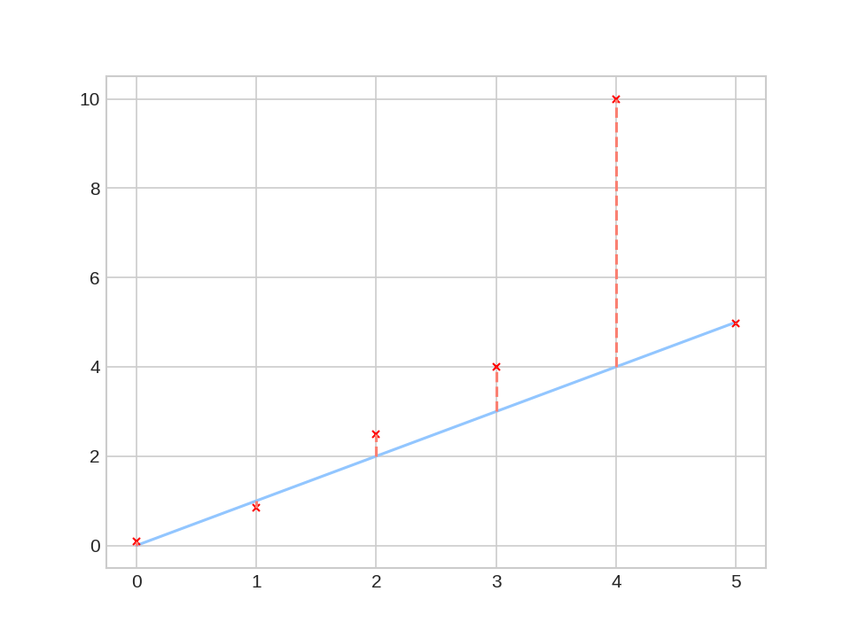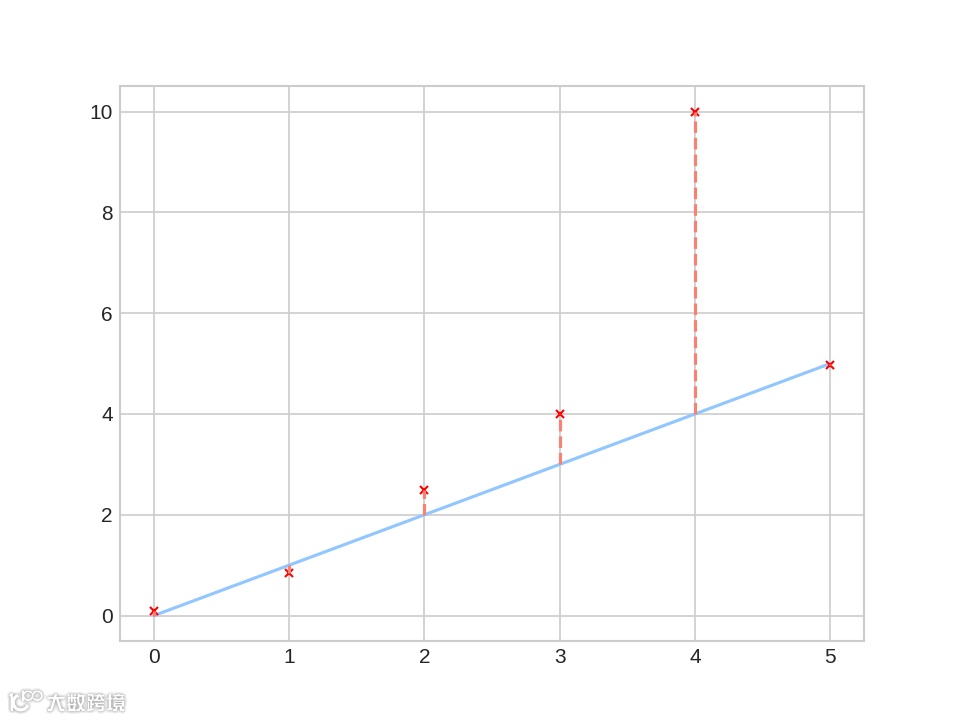 下图中,蓝线上的采样点为我们的真值,红色x为我们的预测值。