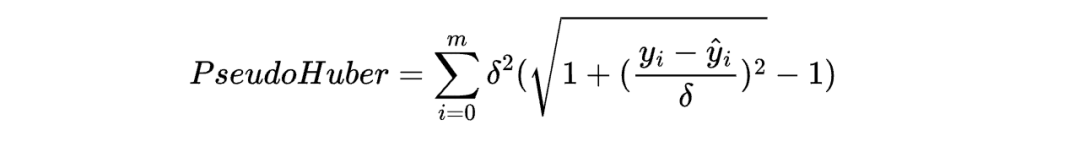 Pseudo-Huber损失函数是MAE函数的鲁棒性和 MSE的实际现有解的结合体。该损失函数还有一个附加参数 delta,主要用于控制函数从二次到线性切换的位置。此外该参数还用于剪裁梯度值,从而可以限制异常值的影响。