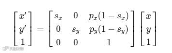 相对于点(px,py)的缩放操作可以归纳为如下公式: