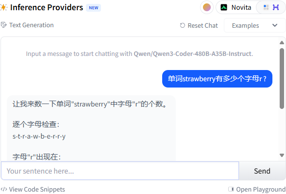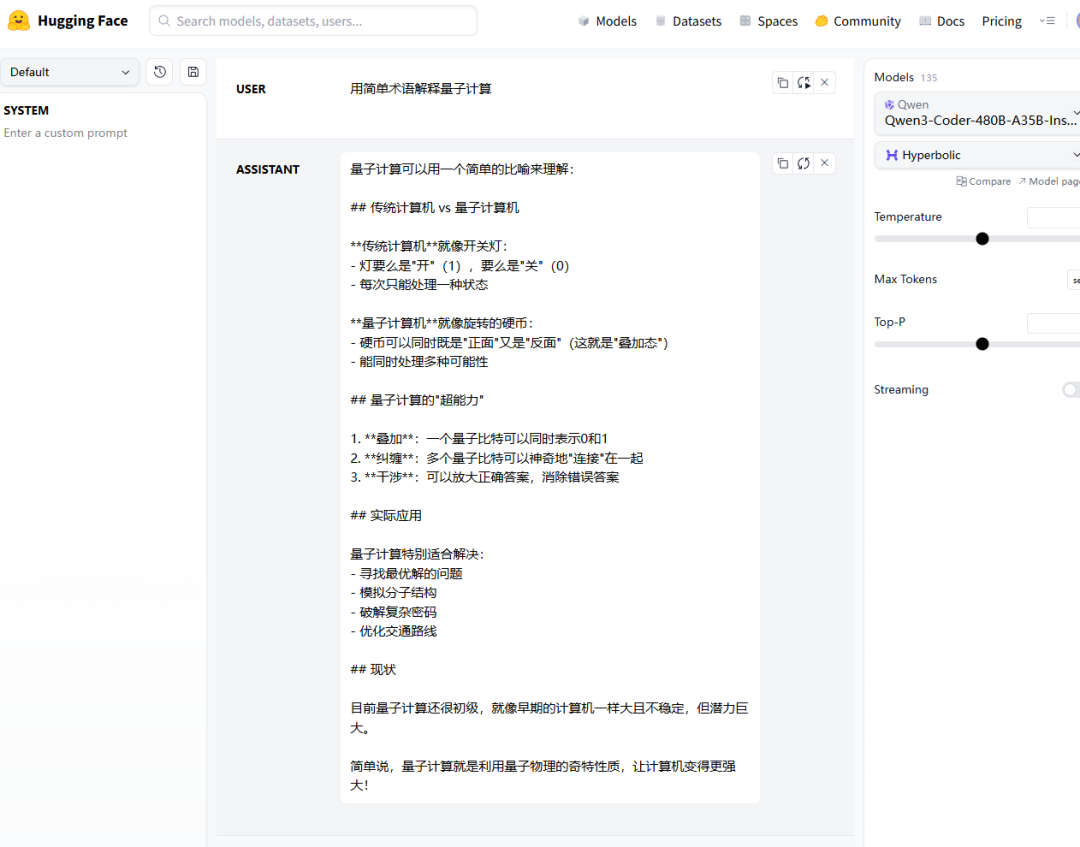 要测试新模型的对话能力,请访问这个HuggingFace空间页面,右侧的聊天界面可自由提问。