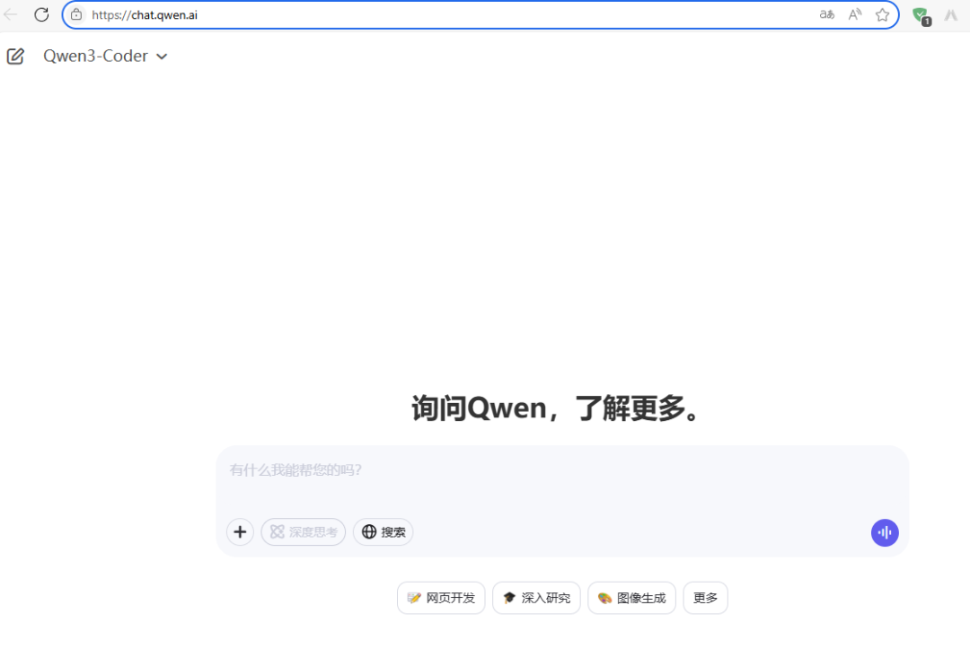 另外一种免费使用Qwen3-Coder模型的方法是通过官方的Qwen聊天应用。访问chat.qwen.ai并登录您的账号,将模型设置为Qwen3-Coder,在提示字段下方选择您需要的工具。您可以用它创建网页应用、进行深入研究、生成图片等等。