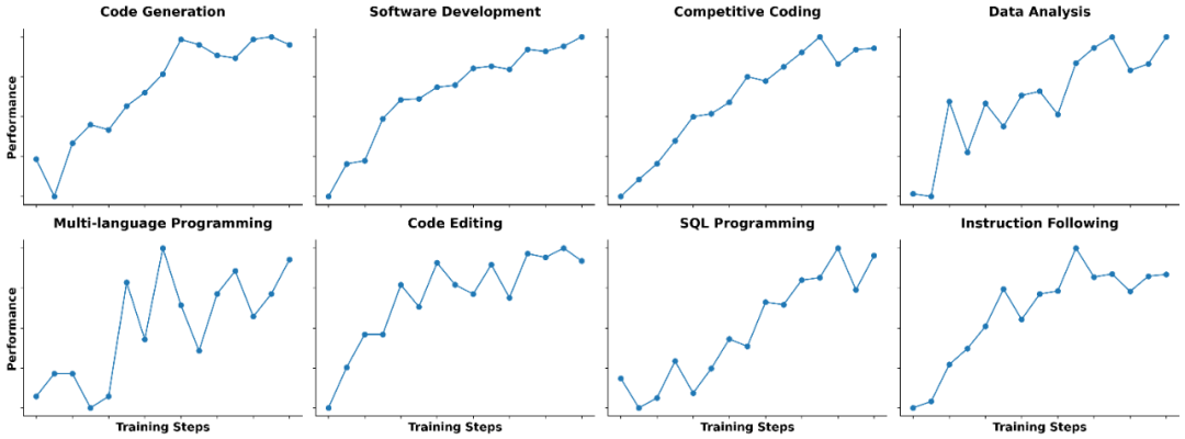 后训练阶段聚焦于强化学习(RL)。团队针对广泛的现实任务引入了 Code RL,并优化了基于执行验证(execution-based verification)的训练方式,大幅提升了模型生成可运行代码的能力。