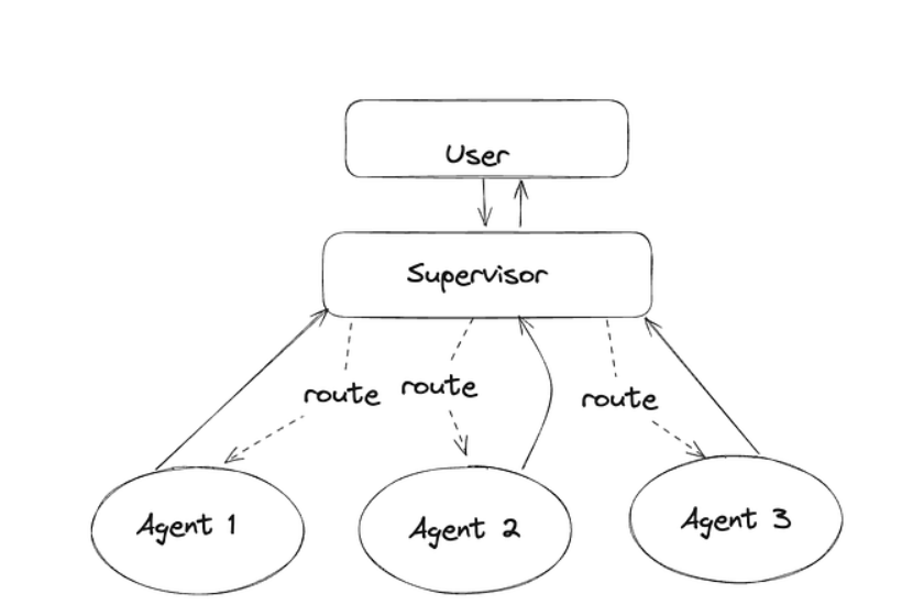 该架构与网络架构高度相似,其核心区别在于:采用监督型智能体(而非路由机制)来协调各智能体的运作。