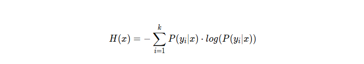 最大熵采样方法通过根据下述公式对所有类别进行求和来计算每个输入样本 x 的熵。