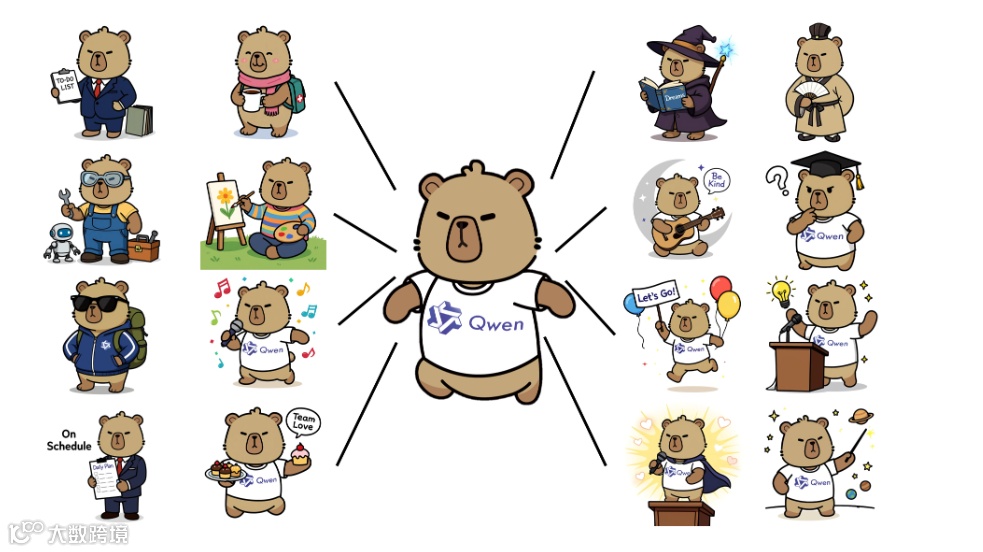 测试团队以其水豚吉祥物为例,针对16种MBTI人格类型生成不同版本。在保留角色核心特征(如辨识度)的前提下,实现情绪、姿态与画风的多样化呈现——虽多数像素被修改,但角色身份始终连贯,这正是"语义一致性"的体现。
