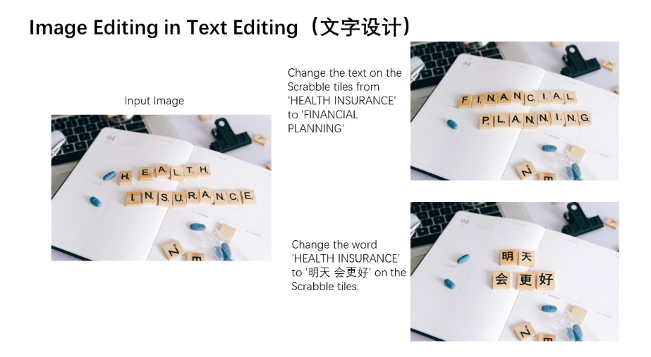 更惊艳的是,你只需框选图像中的某个局部(比如单词里的单个字母),下达"把这个变蓝"的指令,它就能精准修改目标区域而丝毫不波及周边内容。