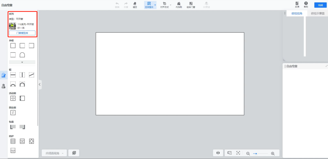 选中窗型,可进行窗户结构和风格的调整。